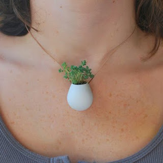 Assim surgiu a linha "Wearable Planter", com vasos para plantas reais. Isso mesmoooo.. não estão ficando loucos não mergulhadores... a maluquinha inventou vasinhos de plantas pra você carregar no pescoço!!!